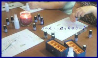 小さなアロマのボトルを取っては、香りを確かめワイワイ♪ガヤガヤ・・