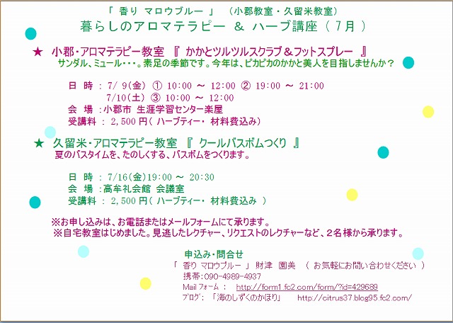マロウブルーさんのアロマ&ハーブレクチャーのご案内