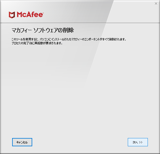 「マカフィー・個人向け製品専用削除ツール」マカフィー製品をアンインストール