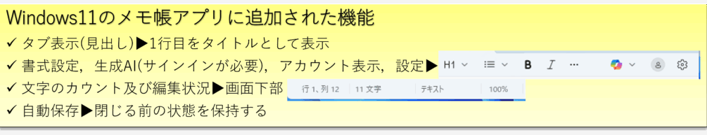 Windows11になってからのメモ帳アプリですが…