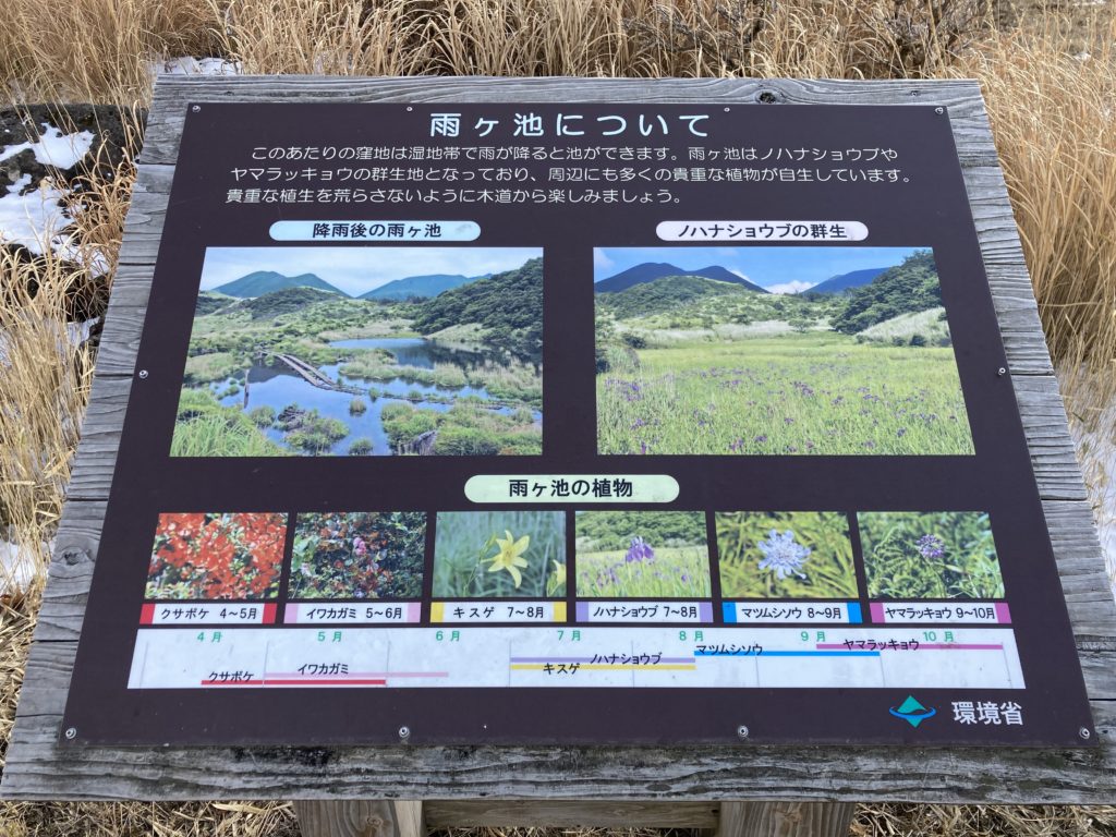 この日は、残雪のある三俣山麓の雨ヶ池まで登る。。