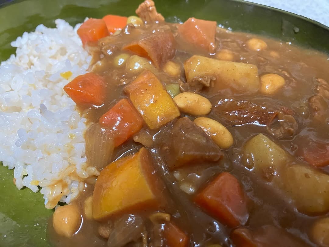 同時調理 2025.12.05 久しぶりにカレー🍛朝に仕込んでおけば楽✌️ カレーを作る時は、同時に肉じゃがを作るのが我が家流🤭 翌日の夕食も決まりっ👍ってことで(笑) 味が染みて、旨しっ❗️だよね😉 今回のカレーは豆と柿入り…柿…なかなか合うかも👍