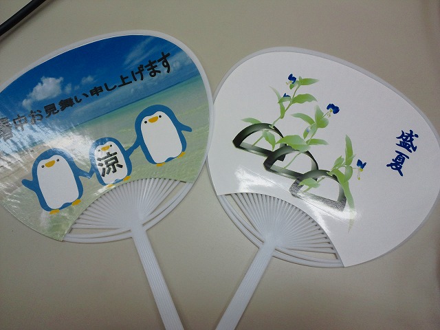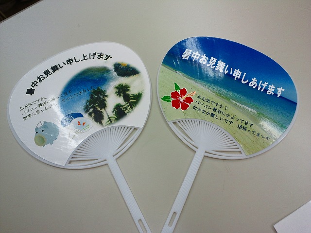 先だって、教室で作成したうちわの暑中見舞いはがき…