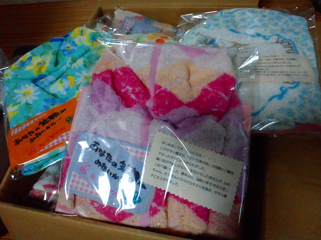 わずかばかりであるが、タオルも寄付させて頂いた。。